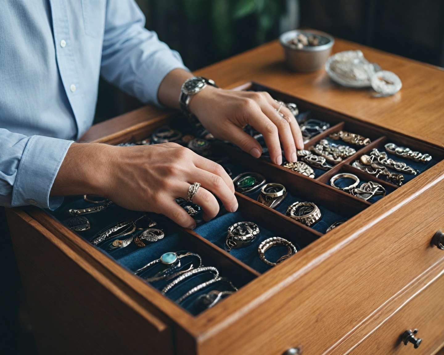 - **Armazenamento Apropriado**: Quando não estiverem em uso, guarde suas joias em um local apropriado. Gavetas acolchoadas ou caixas de joias são ideais. Separe diferentes tipos de peças para evitar arranhões causados pelo contato entre metais diferentes.